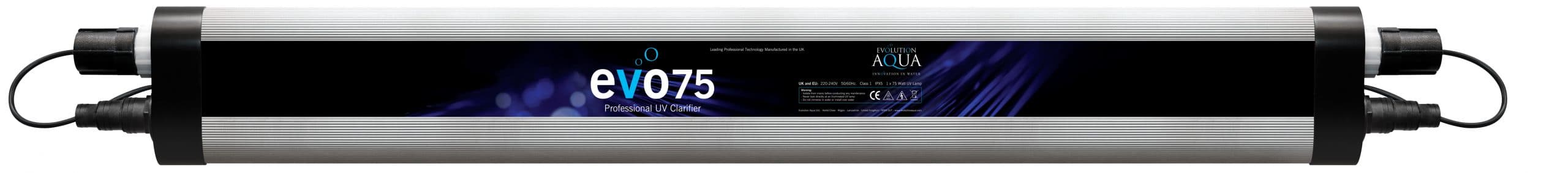 Evo 75w UV | 75,000L | 25,000 LPH | 75w Bulb | 38mm | L128cm x W16.7cm x D8.8cm | 2 Years |
